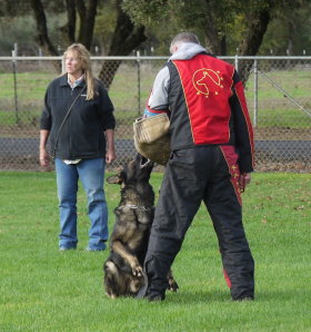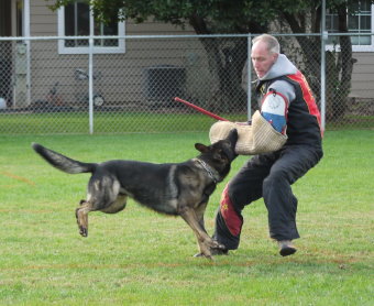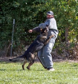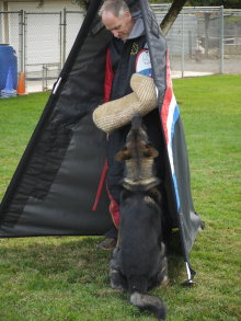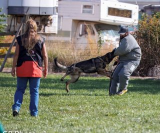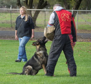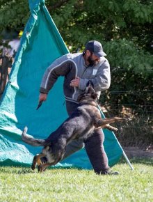Shows an excellent relationship with his handler in obedience with quick and reliable reactions to the commands. Strong drive in protection demonstrating full, hard grips.