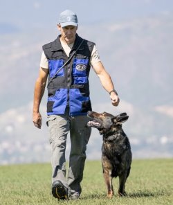 Brian and Tycho had a very good obedience score at the WDA Championship trial but had some trouble with the building search. Tycho is now retired.