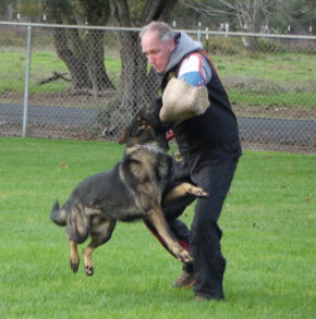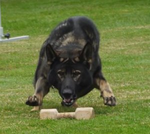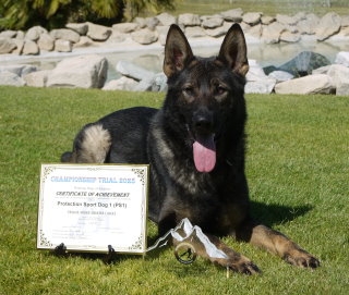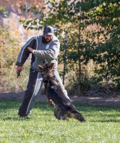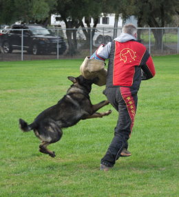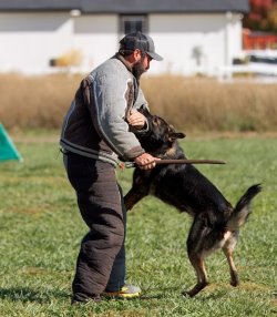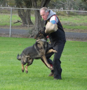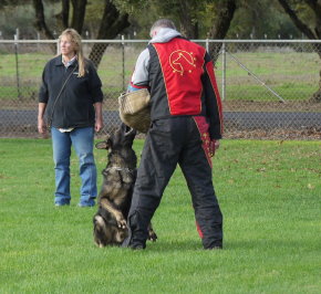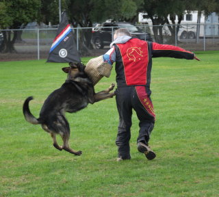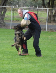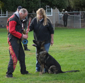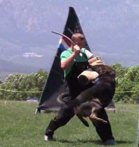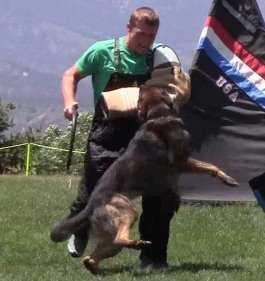 Shows an excellent relationship with his handler in obedience with quick and reliable reactions to the commands. Strong drive in protection demonstrating full, hard grips.